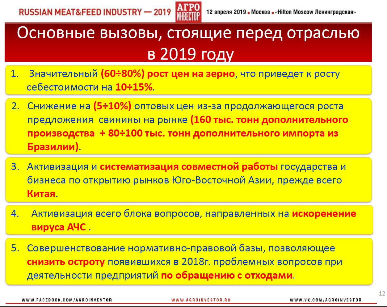 Материалы конференции Russian Meat&Feed Industry 2019. Доклад генерального директора НСС Юрия Ковалева «Обзоры и сценарии развития ключевых товарных рынков: Свинина»